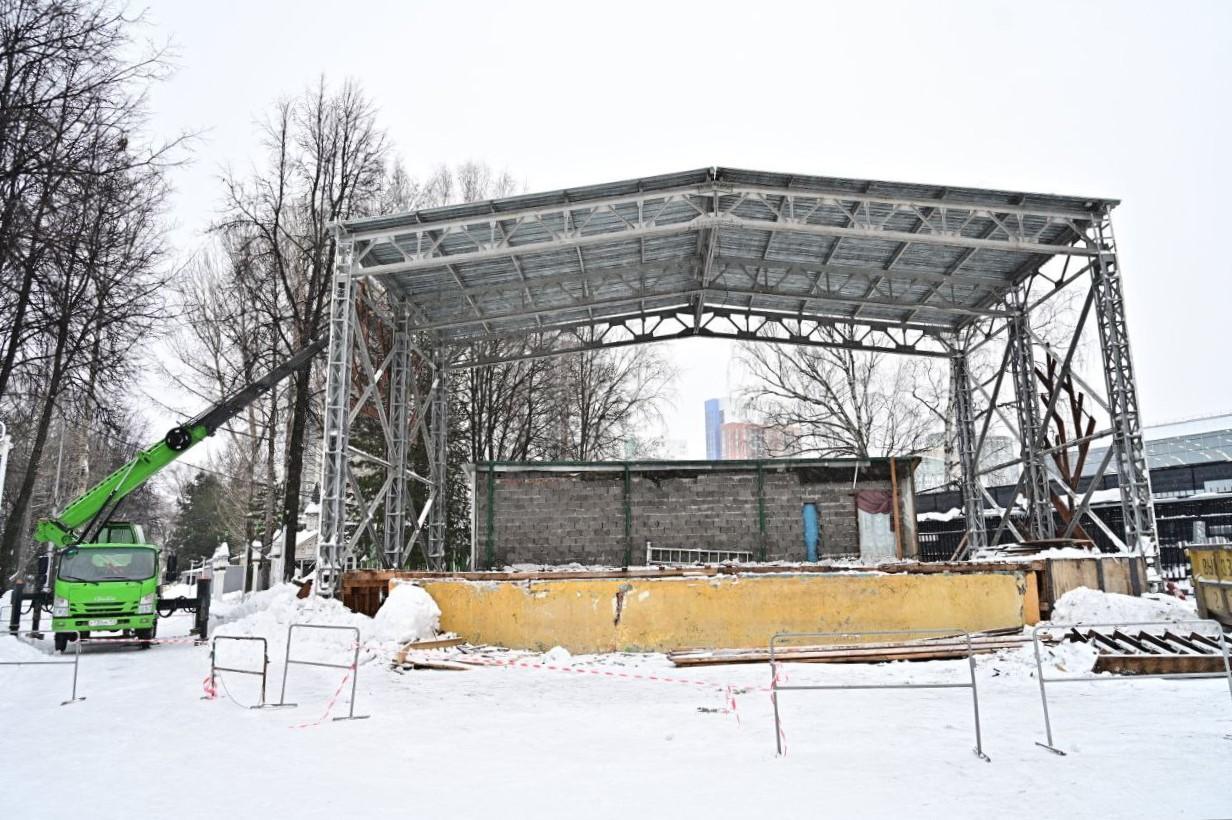 Власти допустили возможность установки в парке передвижной сцены после согласования. Её габариты определят в ходе этого процесса.